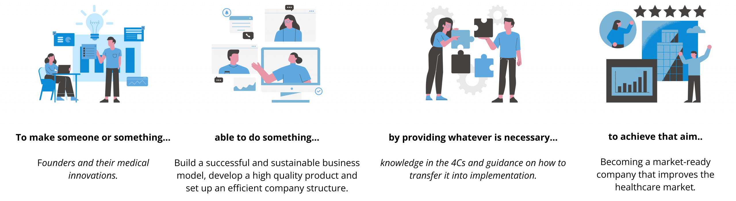 In recent years, we have therefore developed our approach: Through the 4C concept and the 4C Business Modelling method we enable medical innovations! This approach serves as the starting point for our diverse offerings for startups and corporates, but also for the cooperation with investors and academia.